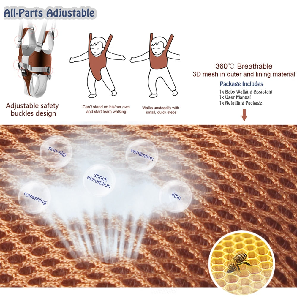 Matériaux de haute qualité: Fabriqué avec 100% coton et maille, ce déambulateur portatif de sécurité assure non seulement la sécurité de votre bébé tout en apprenant à marcher, mais assure également que le bébé est à l’aise et que le matériau peut ventiler l’air. Il est fabriqué avec un matériau solide et durable - pas de déchirures ou de pauses de la pratique continue de la marche.